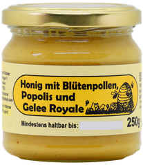 Diese Spezialität beinhaltet neben Propolis auch Blütenpollen welche sehr viele Vitamine enthalten und der Eiweißlieferant der Bienen sind. Zusätzlich hat der Apis-Mix Gelee Royale, welcher der Futtersaft ist, mit dem die Bienen ihre Königinnen aufziehen. Es ist ein Konzentrat aus Vitaminen, Mineralstoffen und Spurenelementen.